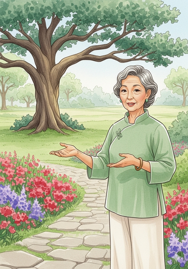 Eines Nachmittags, als sie durch den Park schlenderte, fiel ihr eine ältere Frau auf, die unter einem alten, majestätischen Baum stand. Ihre Bewegungen waren langsam, fließend und von einer tiefen Ruhe erfüllt, die in starkem Kontrast zur Umgebung stand.